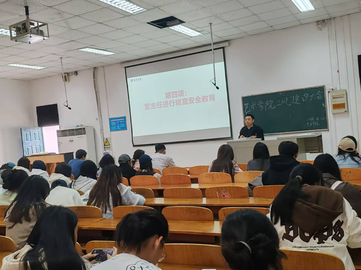 宦忠虎老师强调了寝室安全的重要性,提醒员工们要时刻保持警惕,注意防火、防盗、安全用电等安全问题。他详细讲解了寝室中常见的安全隐患,如违规使用电器、乱拉电线、存放易燃物品、不及时清理垃圾等,并给出了相应的预防措施。对于校园电动车的骑行宦老师提出了具体要求,所有同学要安全骑行,不违规载人,规范有序停车,安全充电,不把电池拿到室内充电等。同时,他还要求寝室长积极做好寝室内部的管理,履行好寝室长的职责,引导带领同学们共同营造一个安全、舒适的学习生活环境。