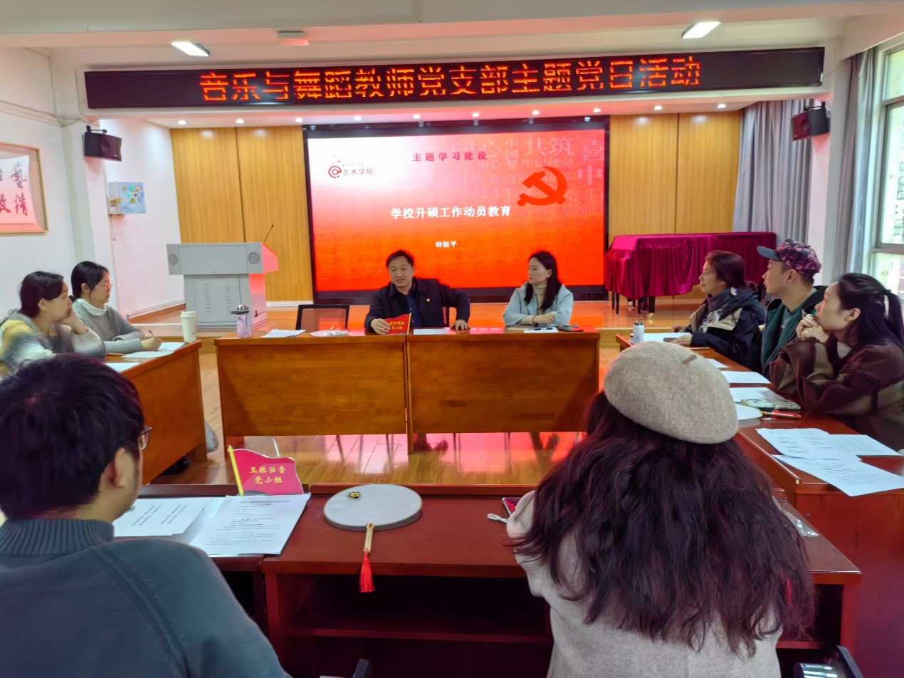 11月29日星期四下午13:00,音乐与舞蹈教师党支部在9号教学楼9210会议室召开了支部党员会议与十一月主题党日活动,党委常委、副董事长田恒平,艺术公司党委书记章倩参加会议。