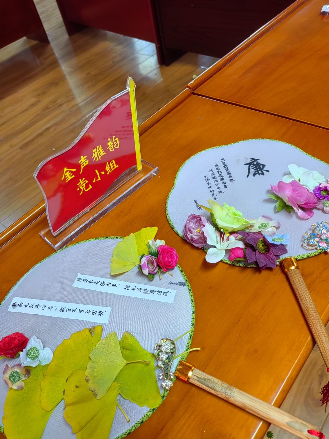 与此同时,支部全体党员教师还共同参与制作“廉洁”主题手工团扇,在审美活动中体会廉洁诗词中的文化与政治深意,提升全体教师党员的廉政意识。
