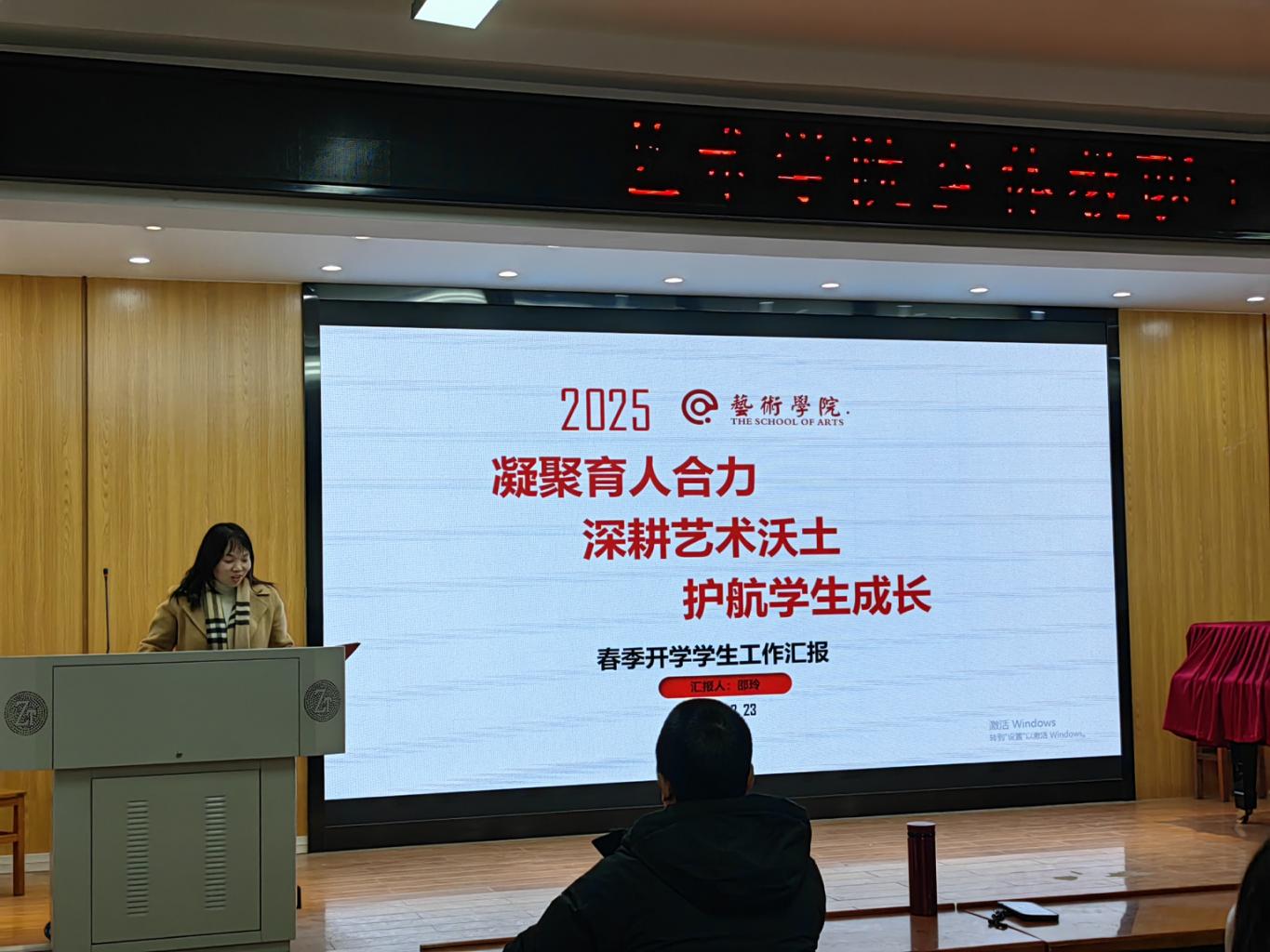 党委副书记邵玲详细介绍了员工工作的各项情况,详细阐述了员工工作的指导思想和具体措施,提出了“凝聚育人合力,深耕艺术沃土,护航员工成长”的工作理念,强调要加强师德师风建设,形成全员育人、全过程育人、全方位育人的良好氛围。同时,还就2025年员工工作重点进行了谋划部署。
