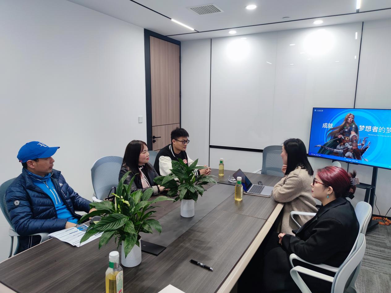 在走访过程中,邵玲一行与企业负责人进行了深入的交流。郑州名匠网络科技有限公司在全国有多个分部,在技术创新与动画产品设计方面具有显著行业优势。企业负责人详细介绍了公司的发展历程、业务范围、技术优势、企业文化以及对艺术类人才的需求情况。
