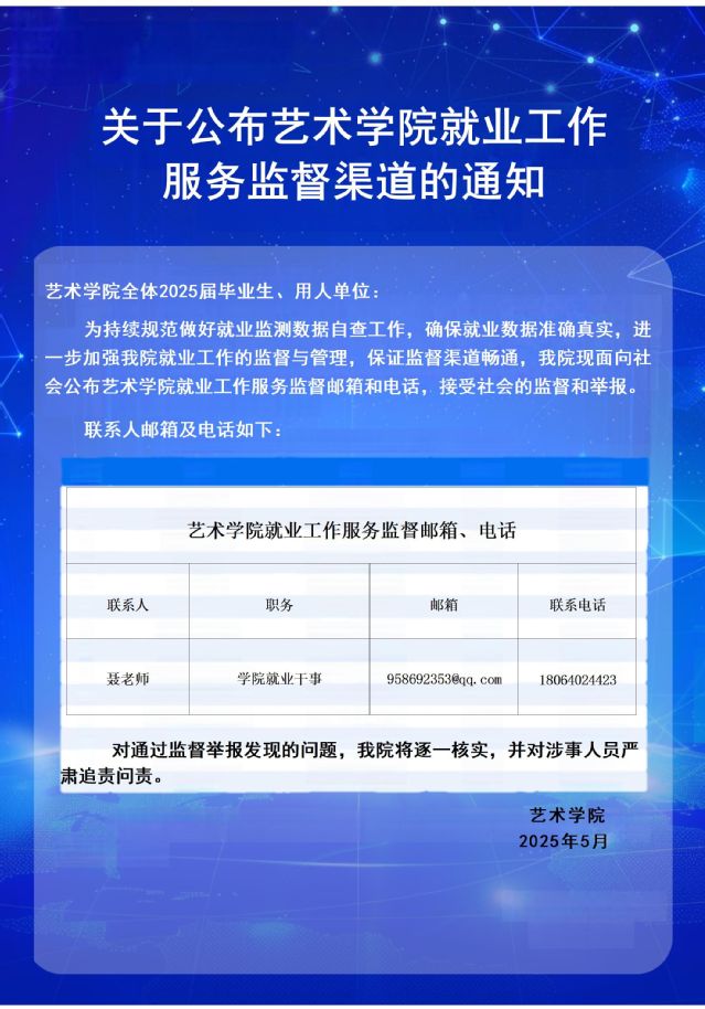 关于公布milan米兰2025届就业工作服务监督渠道的通知