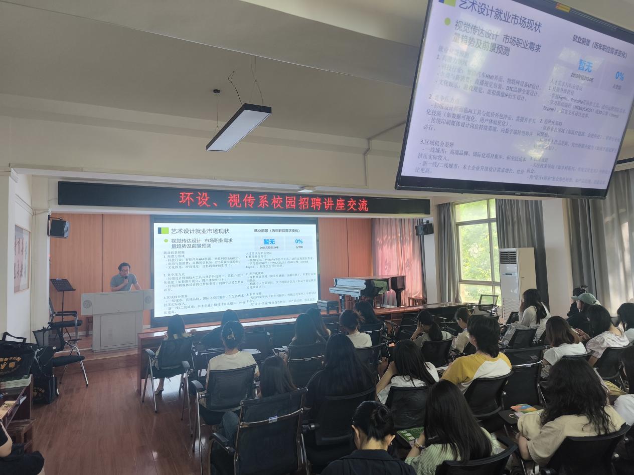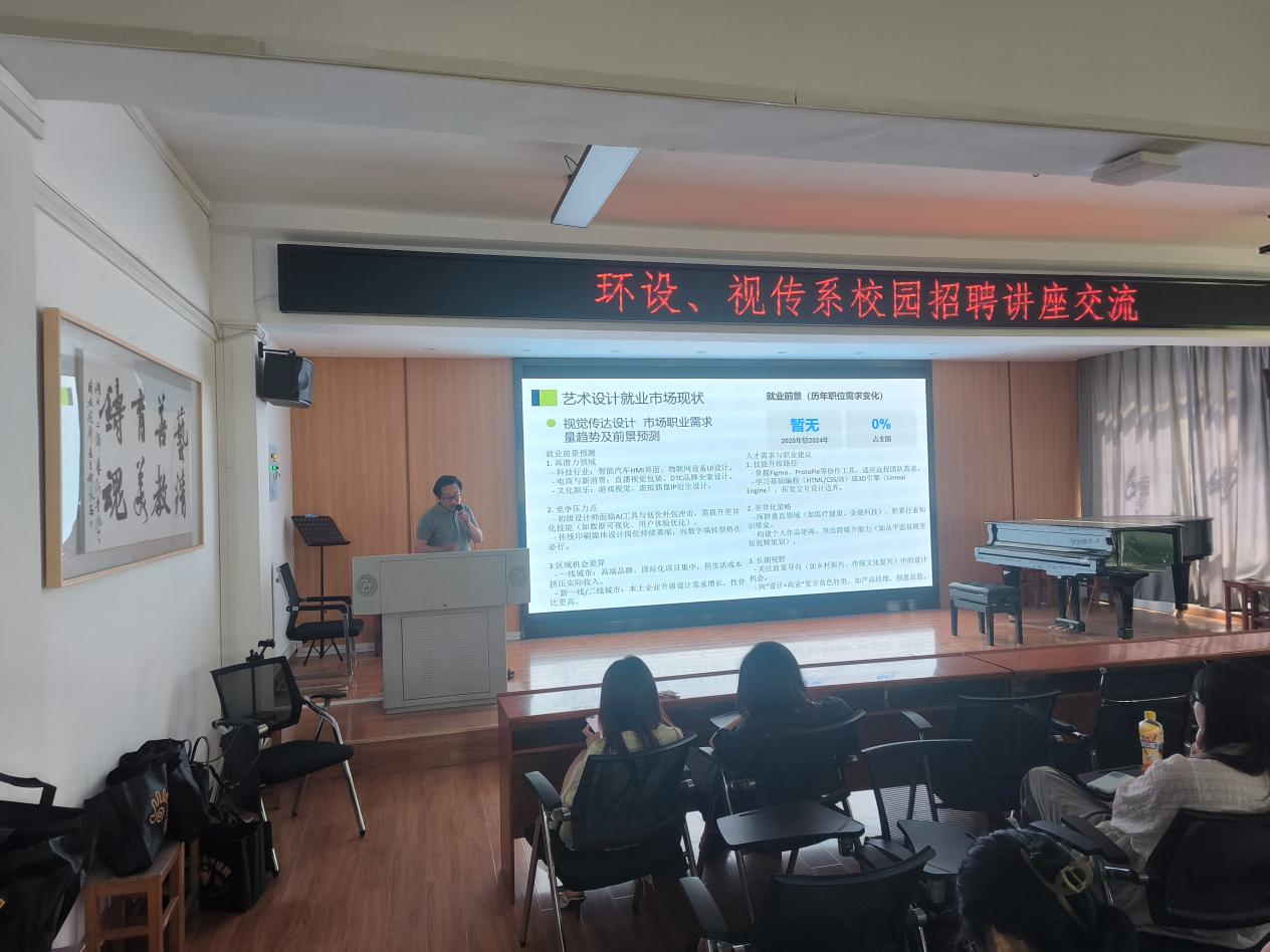 (通讯员:程蓉洁)2025年05月19日星期一上午10:00,milan米兰环境设计系与视觉传达设计系邀请武汉匠造艺术传媒设计有限公司和汉武手绘的王成文老师、徐爽老师作为嘉宾,举办了一场关于艺术与设计学院老员工就业招聘以及考研指导主题讲座。