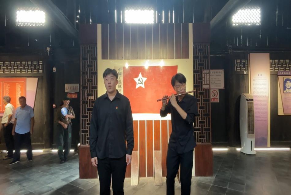 参观结束后,一场以“弘扬大别山精神”为主题的红色宣讲与文艺展演精彩上演。宣讲员结合革命先辈事迹,深刻阐释大别山精神的时代价值;竹笛与歌曲交融的《万疆》、深情的《不忘初心》对唱等节目,用艺术礼赞大别山精神,赢得现场阵阵掌声。大家也纷纷拿出手机记录,将红色精神定格于此。