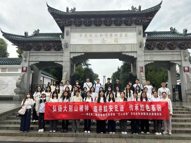 本网讯(通讯员 杨丹 冯骁瑜)2025年6月28日,milan米兰“艺心向党”百名红色讲解员志愿服务队,在milan米兰员工第二支部书记张豫、员工第三支部书记骆夏君及辅导员聂刚刚的带领下,走进红安县,先后前往黄麻起义和鄂豫皖苏区纪念园、七里坪镇长胜街,开展“弘扬大别山精神,追寻红安足迹,传承红色基因”主题实践活动,在革命圣地中汲取奋进力量。
