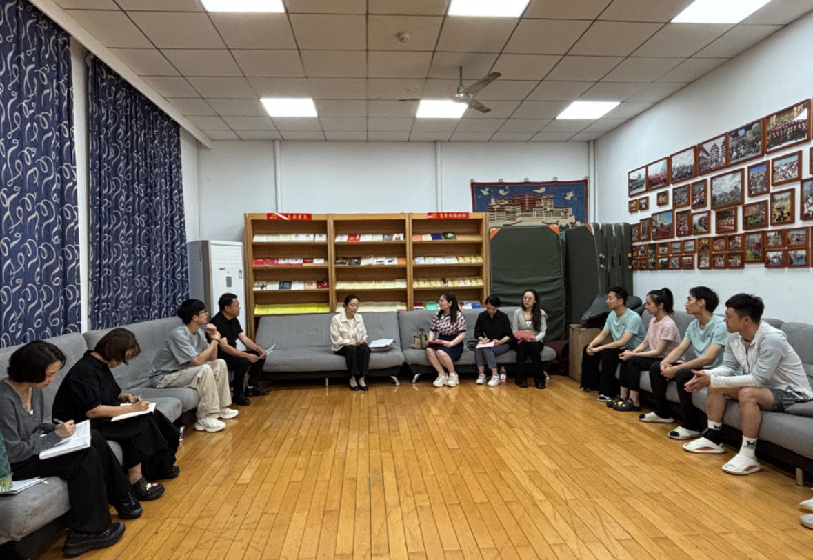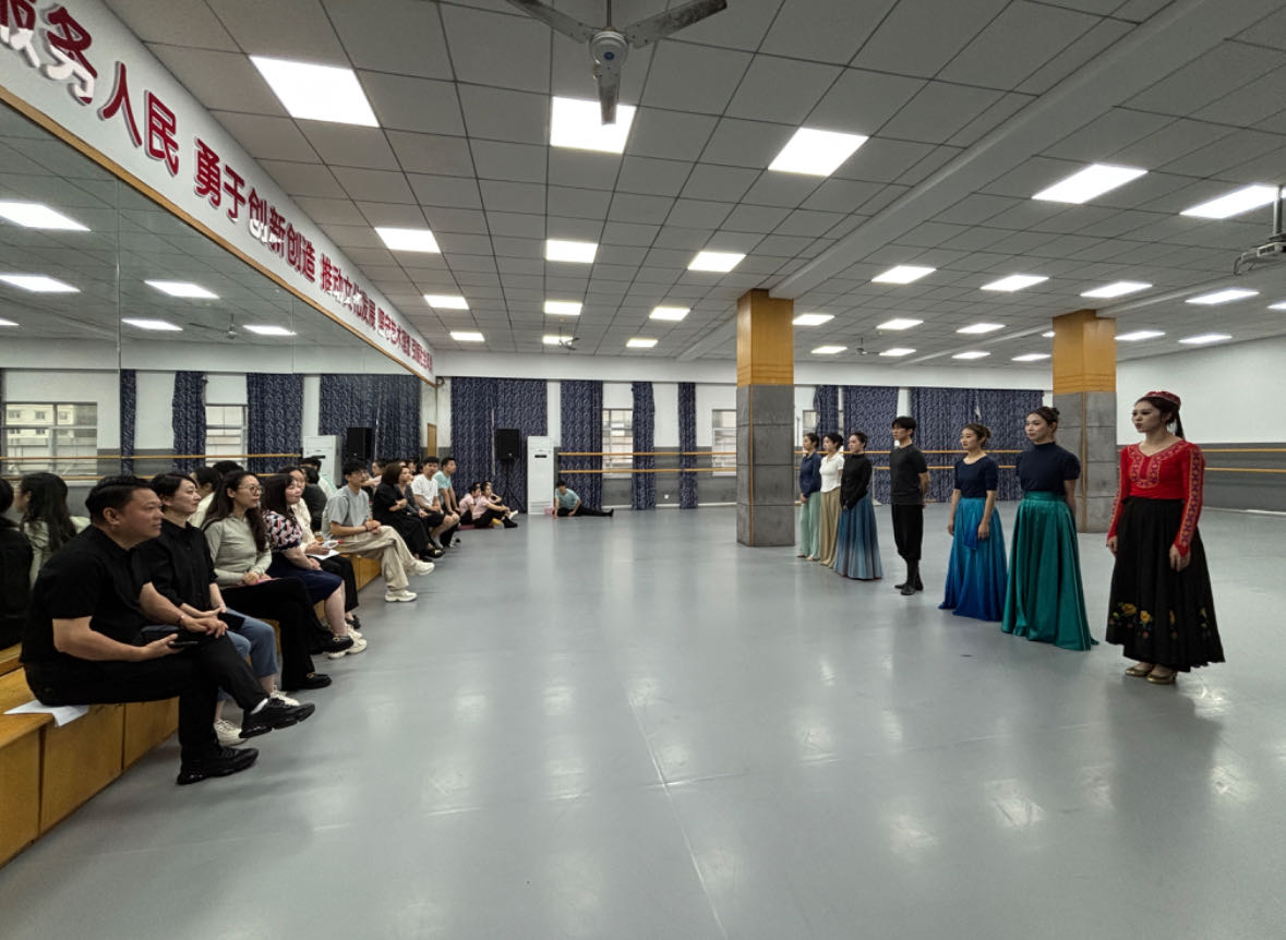 会后,在艺术团负责人的带领下,学院师生一行走进舞蹈排练厅,现场观摩应聘人员的专业展示。高晋主任与艺术团编导就舞蹈编排、艺术创新等专业领域展开交流,并对参演员工的表现进行专业点评,为员工们提供了宝贵的实践指导建议。