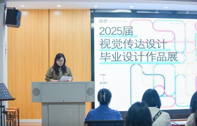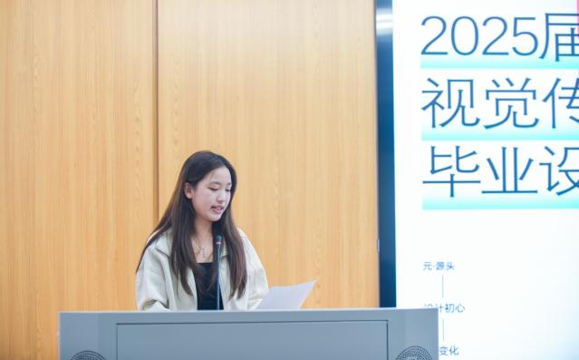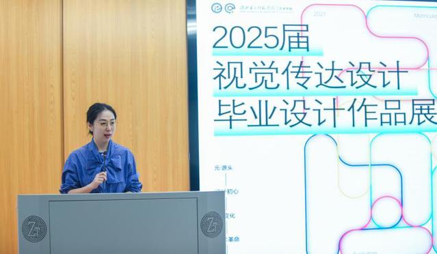 典礼伊始,视觉传达设计系主任程蓉洁作为主持人致辞,她以“元·变”为主题阐释了展览的深刻内涵:“‘元’是源头,代表设计的初心与灵感;‘变’是成长,象征着同学们四年来的蜕变与突破。从技术革新到个人成长,每一件作品都凝聚着同学们的思考与探索。”