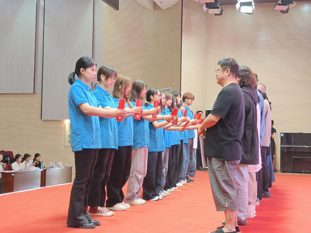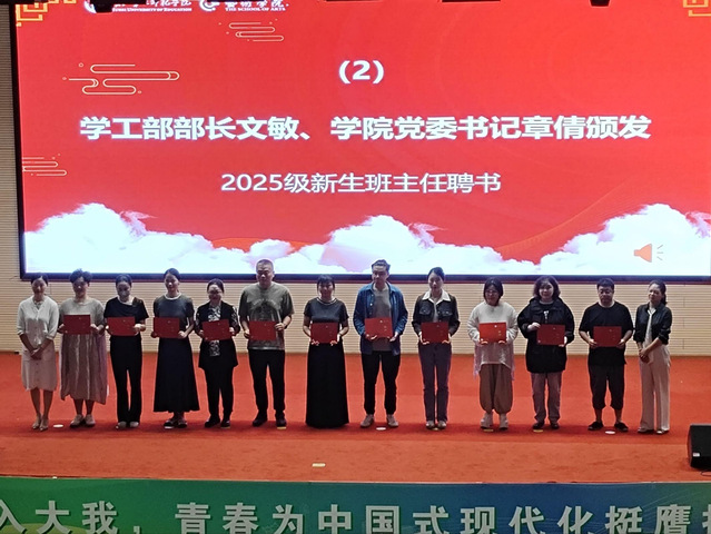 学工部部长文敏与艺术公司党委书记章倩共同为2025级新生班主任颁发聘书。班主任将成为员工在校期间思想引领、学业辅导与生涯规划的重要力量,为同学们的成长提供坚实保障。