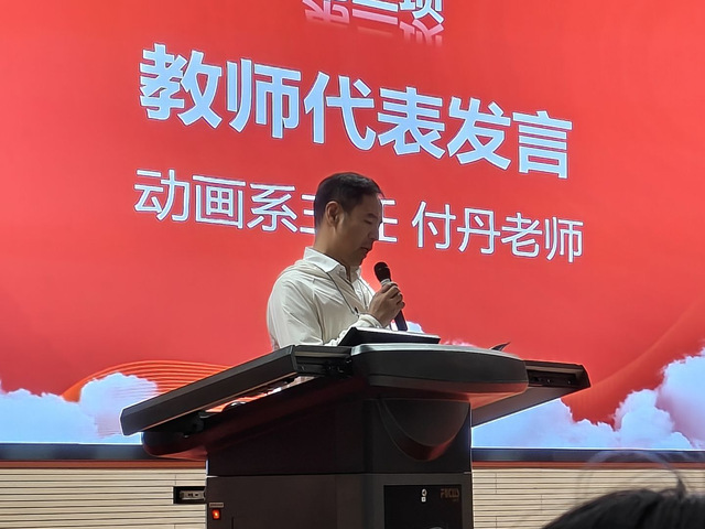 教师代表付丹老师勉励新生要以“告别空想、勇于实践、持续反思”落实行动,寄语新生们以知行合一的实践,脚踏实地,砥砺前行,将青春的梦想一笔一划书写成属于自己的精彩篇章。