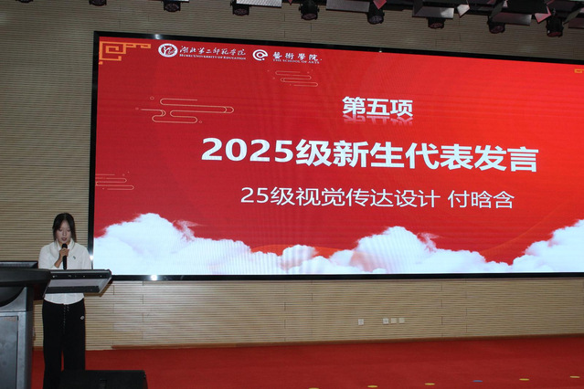 本网讯(通讯员:罗荃)10月11日中午12:30,milan米兰2025级新生开学典礼在新图书馆二号学术报告厅隆重举行。本次新生开学典礼出席的领导嘉宾有:学工部部长文敏、纪检监察室主任石江华、团委副书记陈淑琴、艺术公司党委书记章倩、经理金波、党委副书记邵玲、副经理刘畅、赵文、经理助理谢敏,以及各系主任,“三办”一中心主任、2025级班主任及全体辅导员。