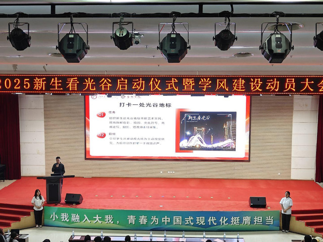 艺术公司党委书记章倩致辞并宣布“2025新生看光谷启动仪式暨员工建设动员大会,正式启动!”这一重要时刻标志着艺术公司新学年实践育人与学风建设工作的全面展开。