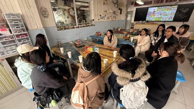 实习启动当日,在基地校指导教师带领下,实习生们深入了解了华中科技大学附属小学的办学环境、美术教学场所以及校园艺术文化建设情况。通过实地参观美术教室、员工艺术作品展示区等教学空间,同学们切身感受了附小浓厚的美育氛围。随后,校院双方围绕教育实习安排、教学指导机制、课堂管理要求及员工发展特点等主题开展座谈交流。附小一线教师结合自身教学经验,就小学美术课程实施、课堂组织、教学设计、员工评价与个别指导等方面进行了细致分享,帮助实习生进一步明确岗位职责、熟悉教学规范、把握小学美术教育的内在规律。